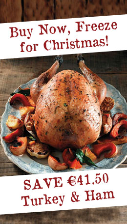 With the numbers sorted out one of the first savings you can make is on the turkey and ham. We started our Christmas Turkey and Ham Sale a number of years ago now as an experiment and we just haven’t stopped because it makes so much sense. It’s simply this; I use my regular Turkey supplier, but I get the bulk of our fresh Turkeys and Hams in November. This is great for the supplier as it is not during the big rush and so I get a better deal that I pass on to you. I can sell a fresh Turkey and Ham in November (to be frozen for the weeks in between) for €41.50 OFF the cost of the same Turkey and Ham in mid December! It’s a fantastic saving. The supplier also gets ahead with cash flow and orders and therefore everyone is winning. Our turkey and ham sale has become an anticipated date on the calendar for many of our customers as they know they are not compromising on quality or taste in order to save money. The only reason you wouldn’t want to avail of this great offer is if you didn’t have a freezer. The turkey and ham sale starts on Monday 25th November 2015 (only in our Clonmel shop) and is also available online now on our Christmas Hampers page for delivery on Black Friday (November 27th) only. Seriously, don’t miss out.