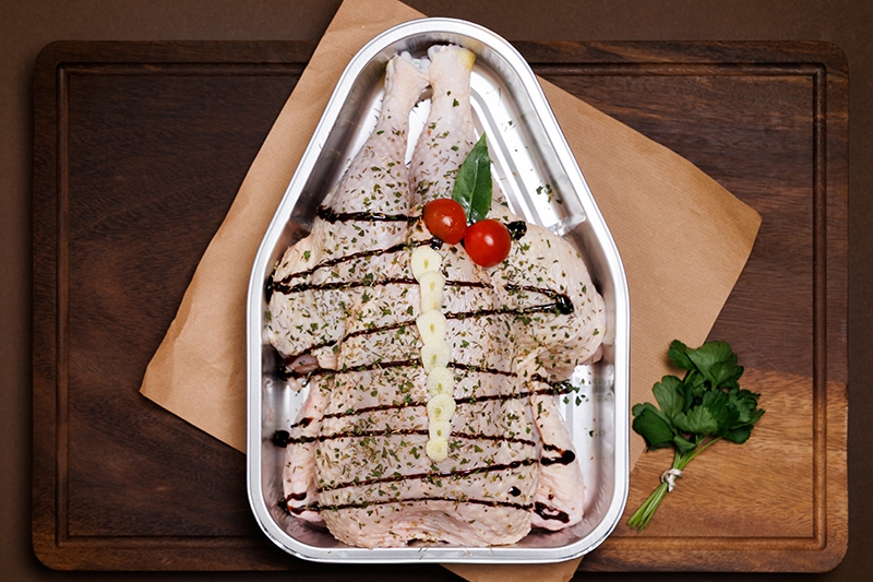 Spatchcocking allows the skin to crisp under the heat of the oven. Our Italian style is a blend of herbs, garlic, olive oil and aged balsamic vinegar