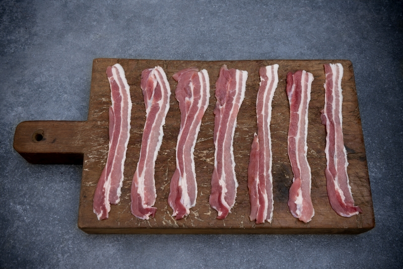 We have taken the time to dry cure these tasty pale streaky rashers. These are different cut by hand, and cured using a traditional recipe.