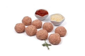 Seasoned Free Range Chicken Meatballs sat on a bed of our Stunning Italian Tomato Sauce, topped with saved parmesan. Season to Taste
